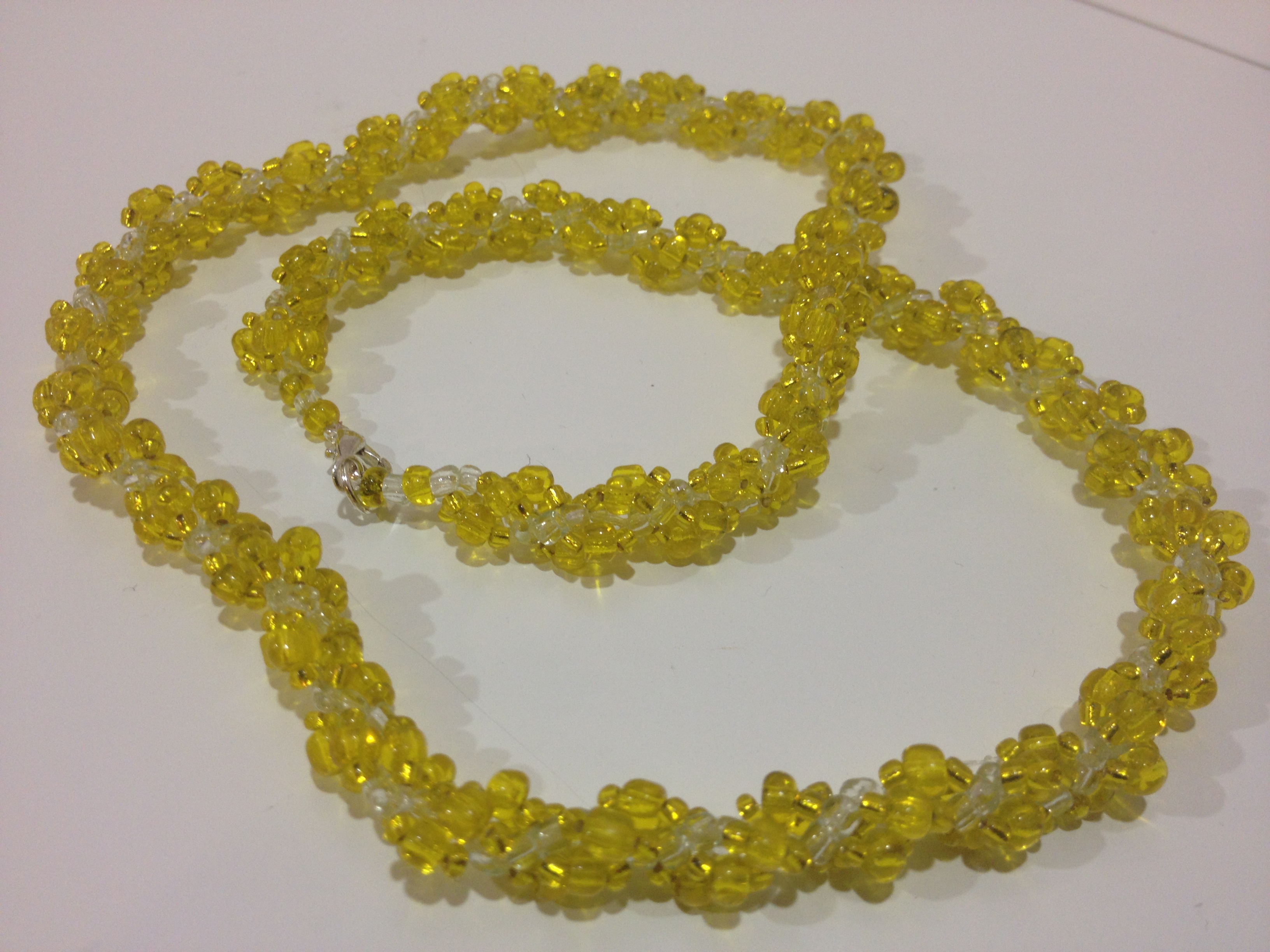 Hand Woven Glass Beaded Spiral Rope - Yellow and Clear