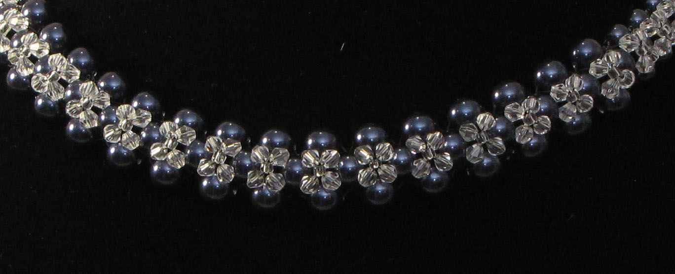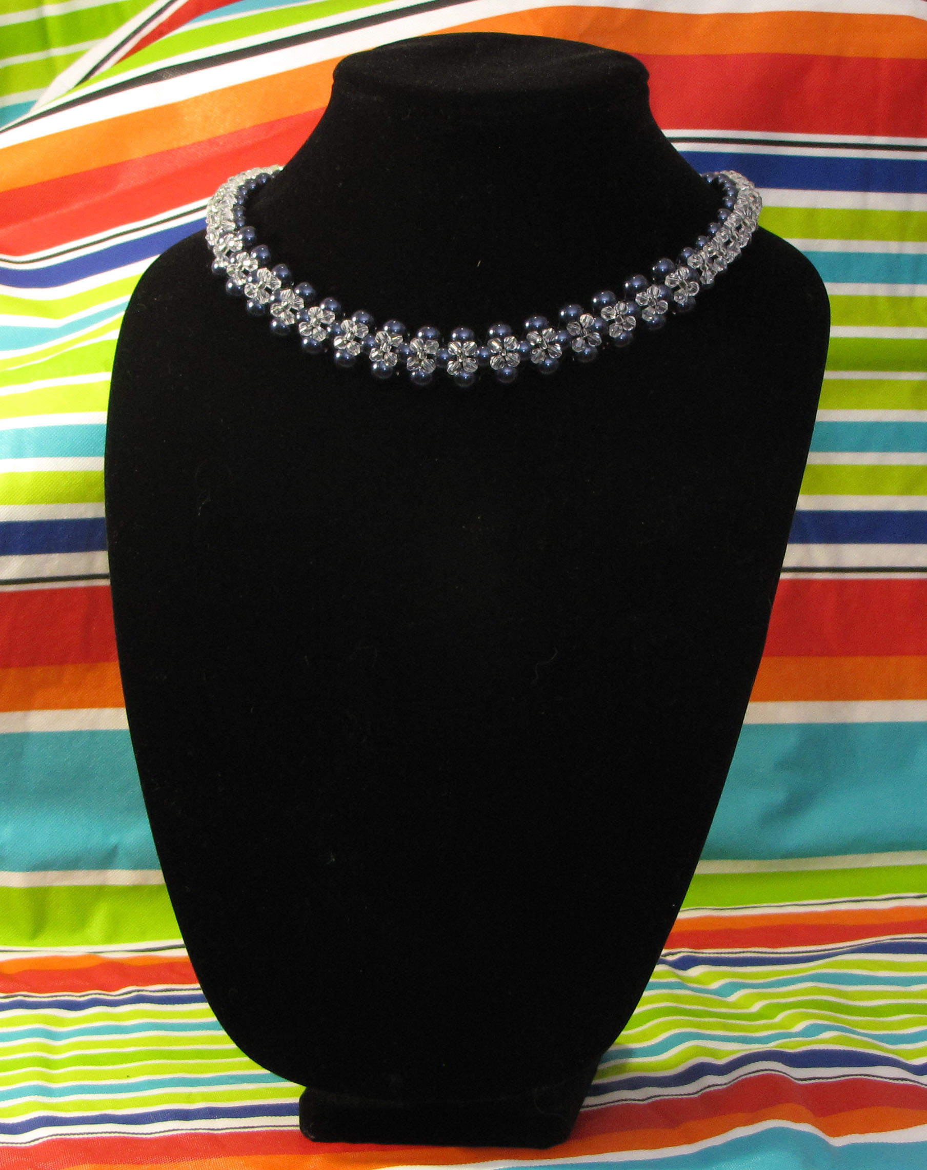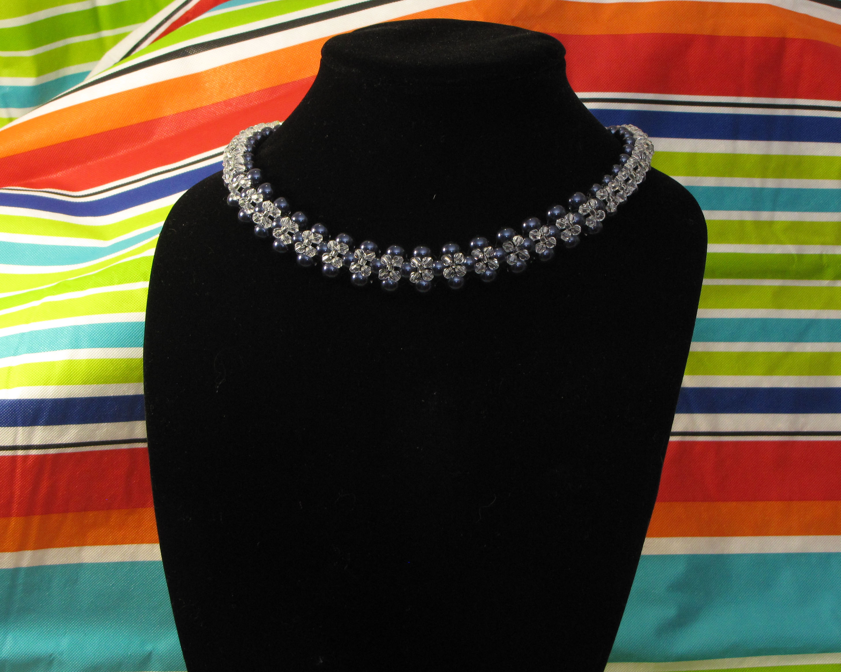 One of a kind handmade beaded necklace made with night blue Swarovski pearls and crystal beads.